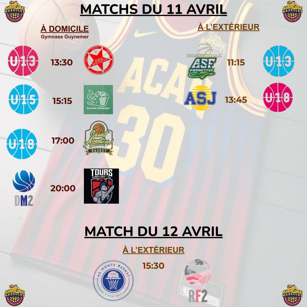 Matchs du 11 & 12 Avril 2026